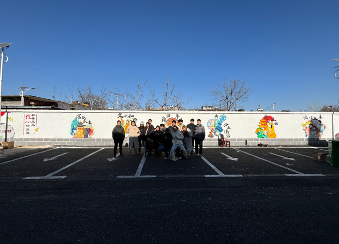 2024年12月2日至15日,学院派出由教师许国超、赵虹霖和14名学生组成的团队,面对冬季施工的挑战,高质量完成了12幅主题墙绘,总面积约500平方米。
