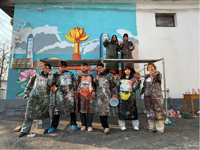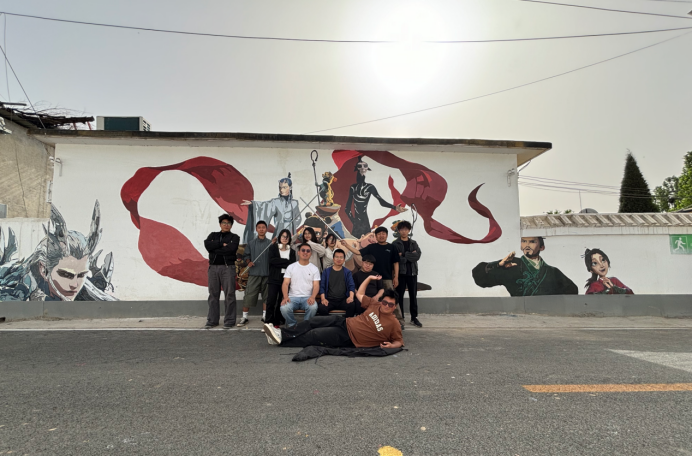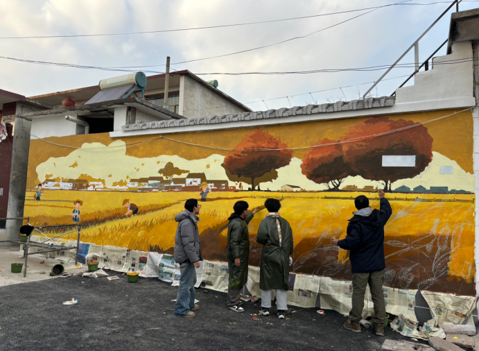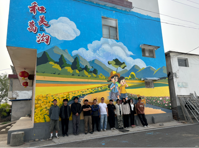 2025年4月16日至26日,学院优化团队结构,在许国超带领下,10名学生和4名指导老师完成5幅聚焦品牌塑造和产业导流的墙绘,总面积400多平方米。