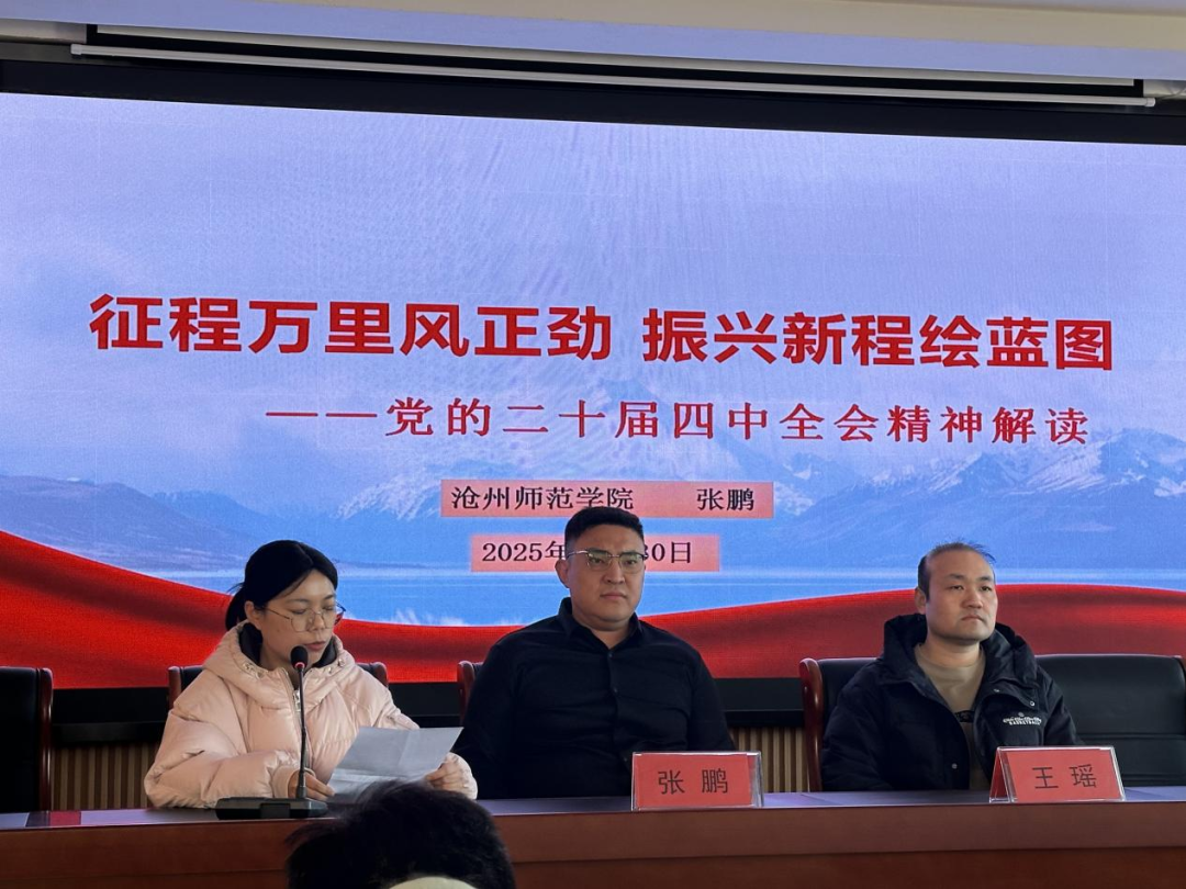 为推动党的二十届四中全会精神在基层落地生根,切实把基层干部的思想和行动统一到党中央决策部署上来,12月30日,我校学生处科长张鹏受邀走进帮扶村河间市沙河桥镇罗位村,为全镇中层干部、村支部书记及乡镇班子成员开展专题宣讲。