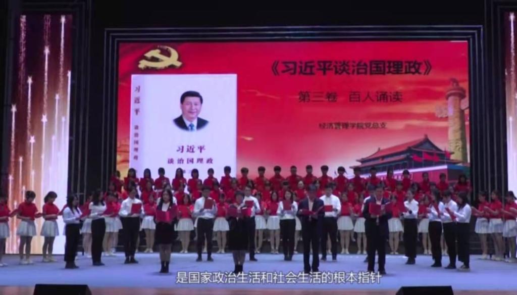 《习近平谈治国理政》第三卷这部重要著作,同第一卷、第二卷共同形成了系统丰富的思想理论整体,集中反映了习近平同志领导中国共产党推动中国特色社会主义进入新时代的大思路、大战略、大智慧,是一部闪耀着马克思主义真理光芒的纲领性文献。为了更好地学好用好这部著作,帮助学校党员干部全面深刻掌握习近平新时代中国特色社会主义思想的发展脉络、主要内容、精神实质和丰富内涵,切实做到学以致用,用党的创新理论武装头脑、指导实践、推动工作。我校在各党总支(支部)中广泛开展了《习近平谈治国理政》第三卷诵读活动,我们将陆续刊登学校各党总支(支部)诵读片段,欢迎批评指正。