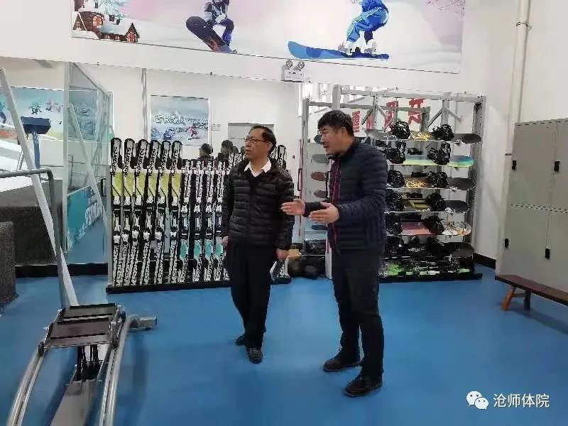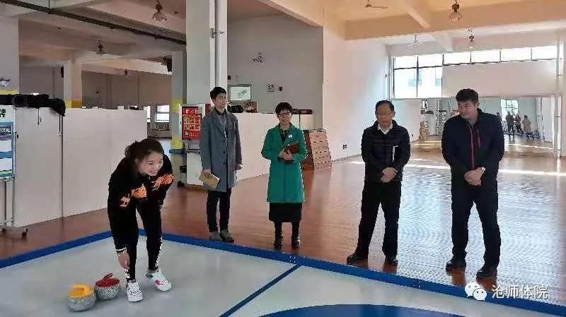 会议结束后,张占平深入体育训练馆、冰雪训练场地、冰壶训练馆进行实地调研。体育学院相关教师用模拟训练的方式展示了滑雪和陆地冰壶运动。张占平对冰雪运动十分支持,并表示学校将会大力支持这类运动。