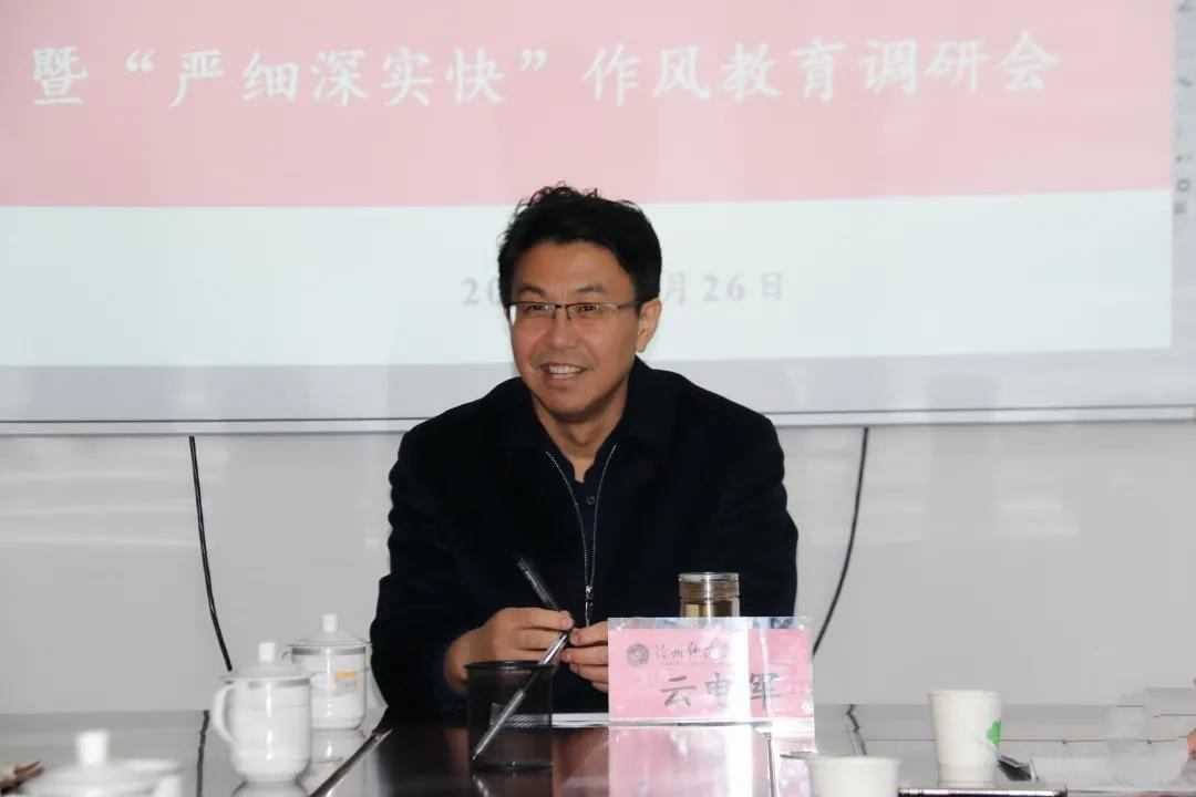 11月26日,党委书记云电军到音乐学院、经济管理学院进行宣讲调研,深入贯彻落实党的十九届五中全会精神,扎实推进“严细深实快”作风教育活动,并就地域文化、校园文化与专业建设、人才培养的各个环节相融合等问题与干部教师展开座谈。校党政办公室、组织部、宣传部等相关人员陪同调研。
