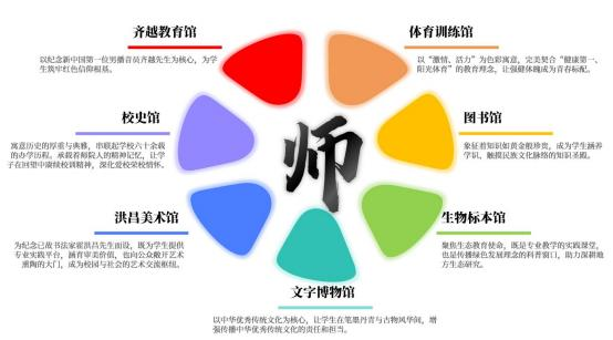 1.整合校本“七色场馆”,打造“沉浸式”文化课堂。依托学校“红橙金绿青蓝紫”七色场馆,深度整合校本特色资源,打造“场馆即课堂”的实践载体,形成提升师范生思想文化、道德文化与价值文化的高地。通过创新“专业实践+思政元素”融合形式,紧扣师范专业特色设计系列活动,构建“岗位认知+职业精神”文化育人体系。