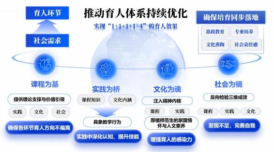 这种闭环生态改变了师范教育“各环节孤立发力”的现状,确保思政教育、专业培养、文化熏陶、社会责任感培育同步落地,实现“1+1+1+1>4”的育人效果。