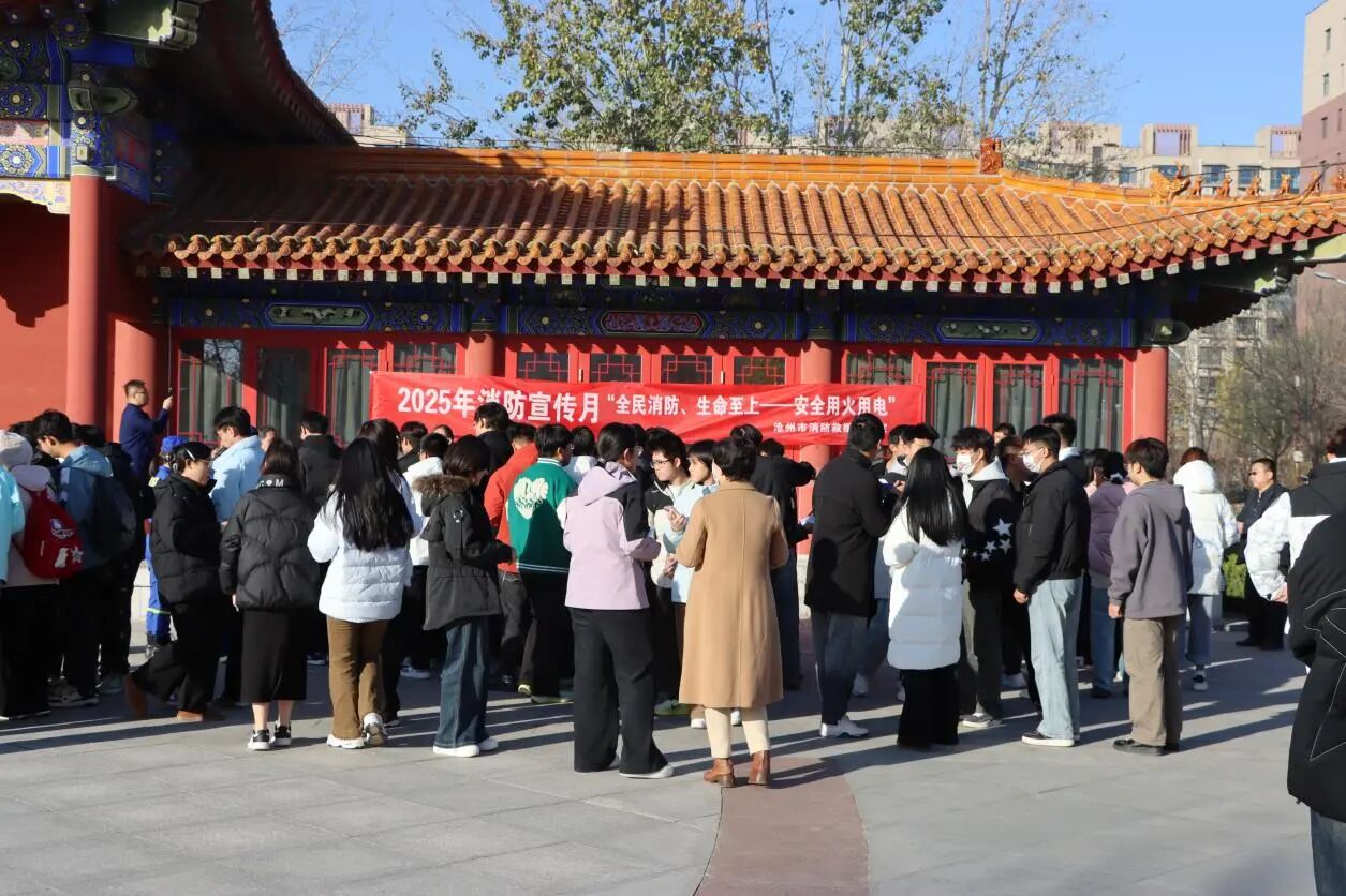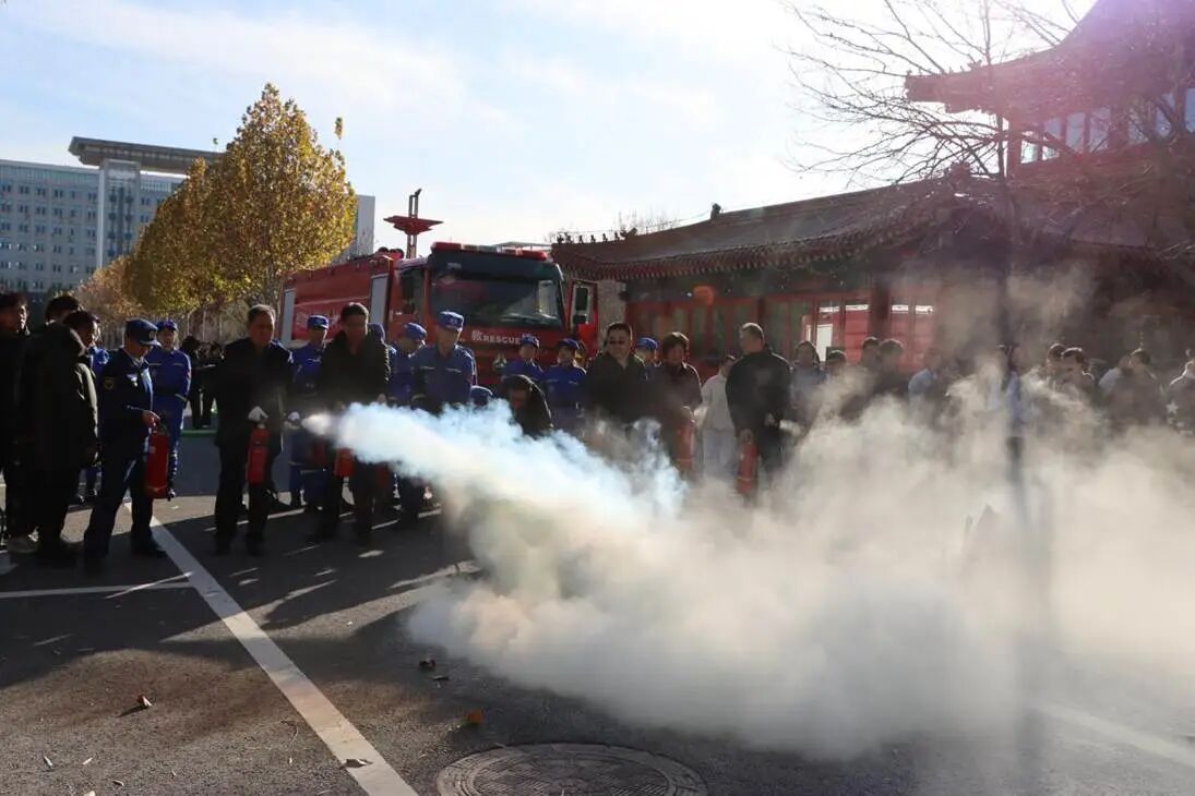 为提高师生消防意识,共建平安校园,11月20 日,在我校“消防宣传月”期间,校安全工作处联合沧州市消防救援支队开展了面向全校师生的消防宣教及演练活动,校领导云电军、范小振、高颖、周振平、朱蓬华参加。各学院、处室分批次参与,千余名师生沉浸式上了一堂消防安全“必修课”。