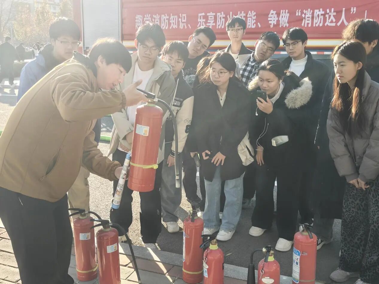 活动伊始,来自沧州市消防救援支队的教官结合冬季校园用火用电高频风险,面向师生讲解消防安全常识及注意事项。他们手持灭火器、消防水带等器材,手把手演示操作要领。现场师生围拢学习,不时点头记录。随后,师生们轮番上阵,实操使用消防水带搭建输水线路、对准模拟火盆精准灭火。宣传展台前,知识问答、印章集赞、Q版贴纸等新颖形式让消防安全知识入脑入心。师生们有序参与,或认真聆听讲解,或亲手实操演练,或积极抢答问题。同学们纷纷表示:“以前只在视频里看过这些消防知识,今天亲手操作才真正掌握了实用技能。”