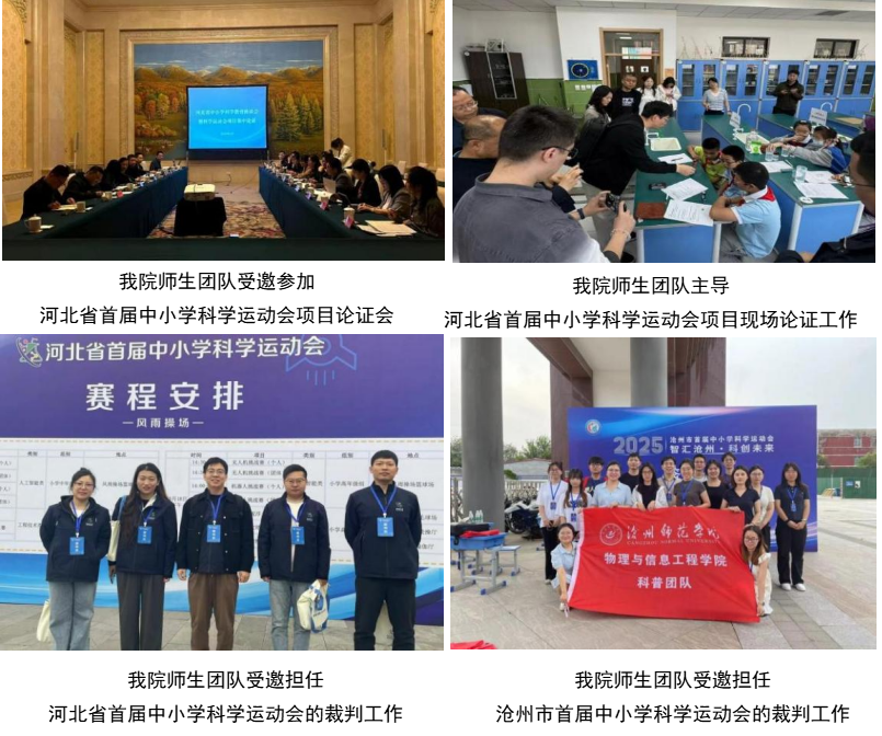 2025年7月上旬和10月中旬,沧州市教育局主办的沧州市首届中小学科学运动会和河北省教育厅主办的河北省首届中小学科学运动会顺利举办,我院师生团队受邀全程深度参与相关工作,设计的比赛方案得到了河北省教育厅的认可并采纳为最终的比赛项目方案,并受邀担任比赛的裁判工作,为了活动的顺利举办奉献了全力力量。